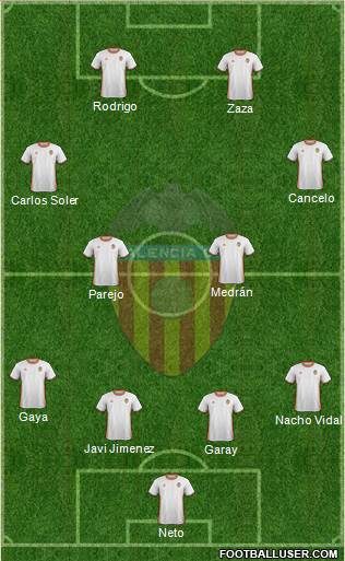Mediocampistas: Dani Parejo, Carlos Soler, Álvaro Medrán, Fabián Orellana, Nemanja Maksimovic, Nacho Gil
