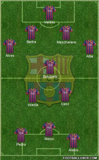 Víctor Valdés, Dani Alves, Jordi Alba, Mascherano, Piqué, Busquets, Xavi, Iniesta, Neymar, Alexis, Messi.