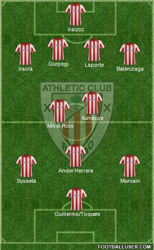 - En la media, doble pivote formado por Iturraspe y Mikel Rico, con Ander Herrera de mediapunta por delante.