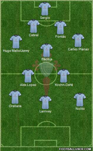 - Los laterales está por determinar. Yo creo que Planas no saldrá del equipo y se la jugarán Hugo Mallo y Jonny (está por ver)