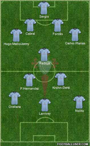 Sergio; Jonny, Cabral, Fontás, Planas; Radoja, Khron, Tucu; Nolito, Orellana, Larrivey.