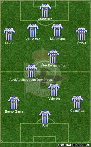 Centrocampistas: Álex Bergantiños, Abel Aguilar, Juan Domínguez, Valerón, Camuñas, Bruno Gama, André santos y Saúl.