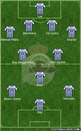 Convocados: Porteros: Aranzubia y Germán Lux; Defensas: Manuel Pablo, Aythami, Marchena, Zé Castro y Evaldo; Centrocampistas: Álex Bergantiños, Abel Aguilar, Juan Domínguez, André Santos, Bruno Gama, Salomão, Valerón, Pizzi y Camuñas; Delanteros: Riki y Nelson Oliveira. (Datos de Página oficial del Deportivo y de Riazor.org)