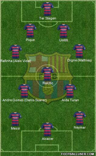 NOTA: hay posibilidades de que Messi empiece en el banquillo, por lo que Arda ocuparia su posicion en el campo y el hueco de Arda en el centro del campo pasaria a ocuparlo Denis Suarez