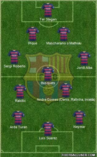 Defensas: Sergi Roberto / Pique / Mascherano o Mathieu / Jordi Alba