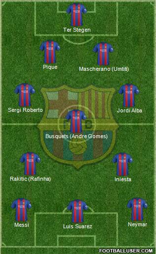 Defensa: los laterales creo que serán Sergi Roberto y Jordi Alba ya que no fueron titulares en Champions. Una posición de central para Piqué (que ya vemos que sigue sin forzar la amarilla) y otra para Mascherano dándole un merecido descanso a Umtiti que lleva jugando prácticamente todos los partidos desde hace 1 mes.