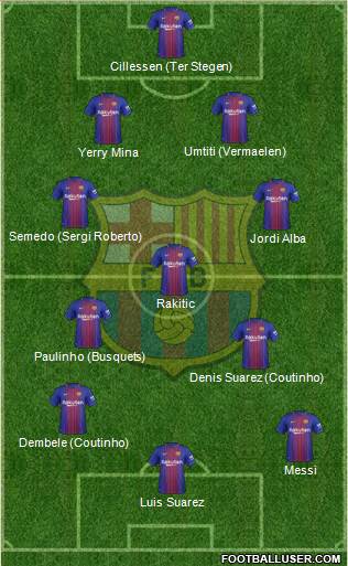 Ter Stegen, Semedo, Piqué, Vermaelen, Alba, Rakitic, Paulinho, Coutinho, Dembélé, Messi y Suárez podría ser el once.