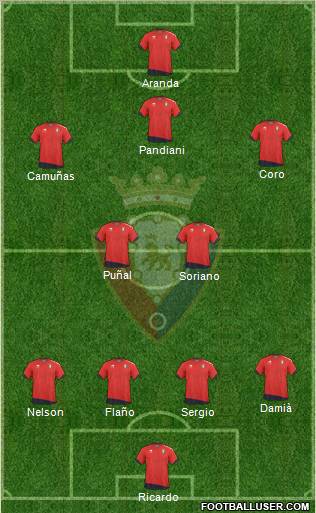 Bueno, confío en que Osasuna mejore y enderece su maltrecha marcha, pero no sé si ocurrirá en este partido. Vuelven a jugar los iraníes y Pandiani y eso puede aportar más alternativas al equipo de Camacho. A ver cómo está la defensa, porque Sergio se retiró jodido del campo y podemos tener problemas en el centro de la zaga. Yo no sé si poner a Pandiani para este partido. Me imagino que estará bajo de forma. Yo pondría a los que decís, a Ricardo, a Camuñas y es posible que a Nekounam, que ha jugado bien con su selección y ha vuelto con energías renovadas y con confianza. A Aranda o Pandiani no sé si ponerlos, al igual que a Coro o Masoud... Este partido es como abrir un melón, no sabes cómo te va a salir hasta el mismo día.