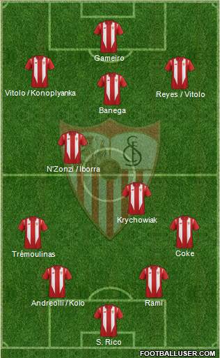 Sergio Rico, David Soria; Coke, Mariano, Trémoulinas, Kolo, Rami, Andreolli; Krychowiak, N'Zonzi, Banega, Iborra, Vitolo, Konoplyanka, Reyes; Immobille, Gameiro y Llorente.