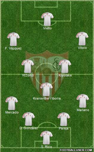 Sergio Rico, José Antonio Caro; Pareja, Mariano, Mercado, Diego González; Vitolo, N'Zonzi, Sarabaia, Kiyotake, Franco Vázquez, Kranevitter, Iborra, Ganso, Correa, Konoplyanka; Vietto, Ben Yedder.