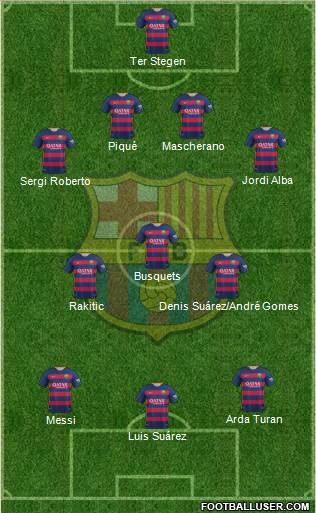 - En mediocampo, Rakitic y Busquets son fijos y el buen partido de Denis me hace pensar que va a jugar él, pero no descarto la titularidad de André Gomes ya que éste será un partido mas físico y de contacto, veremos si nos sorprende el míster (otra vez).