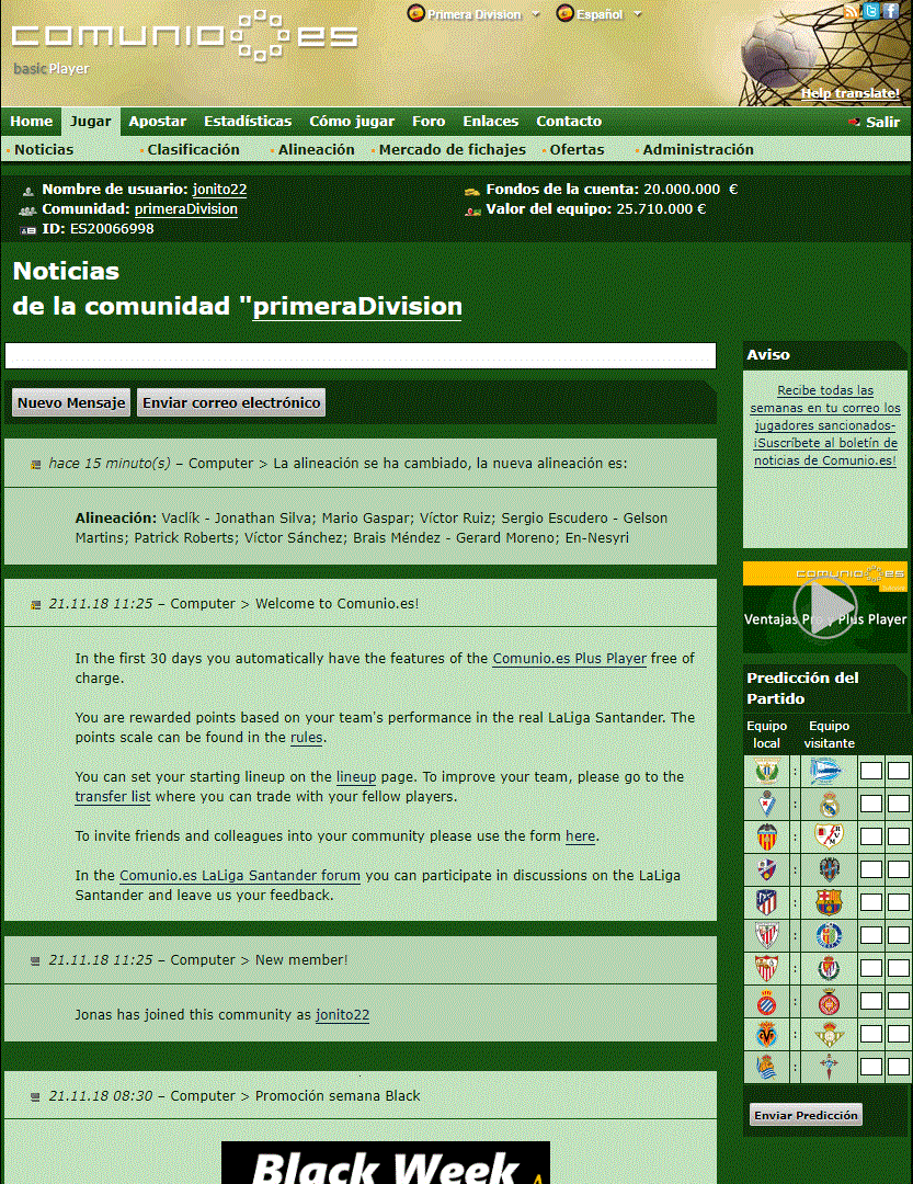 Cada miembro recibe desde el principio un equipo con 15 jugadores de la Primera División y un presupuesto valorado en 20 millones de EUR , o empieza sin jugadores y recibe un presupuesto valorado en 40 millones de EUR.