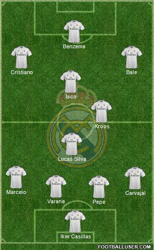 Nuevamente alineación muy previsible a la espera de la recuperación de los dos titulares que quedan en la enfermería: James y Ramos, y con la duda de Modric, ya recuperado de su lesión, pero con un déficit de ritmo competitivo más que evidente. Podría entrar en la convocatoria pero no hay demasiadas posibilidades de que juegue.
