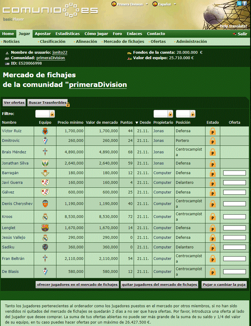 Cada miembro intenta mejorar su presupuesto y su equipo comprando y vendiendo jugadores. No son suficientes tan sólo conocimientos futbolísticos, sino también habilidades financieras y diplomáticas, pues cada jugador existe solamente una vez en la comunidad, por lo que habrá que negociar con los otros miembros de la comunidad o con el ordenador.