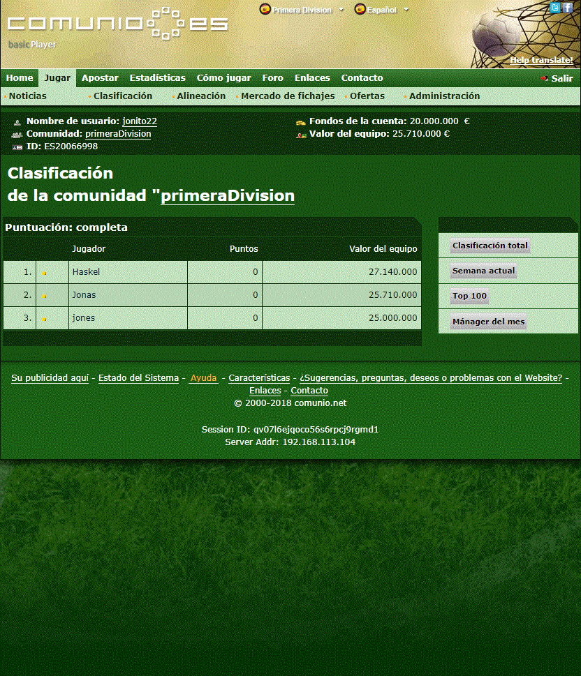 Cada miembro recibe desde el principio un equipo con 15 jugadores de la Primera División y un presupuesto valorado en 20 millones de EUR , o empieza sin jugadores y recibe un presupuesto valorado en 40 millones de EUR.